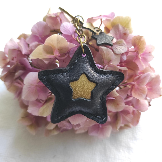L'étoile mesure 4.5*5cm environ. Elle est agrémentée de petites étoiles coordonnées et montées sur un anneau brisé couleur laiton.